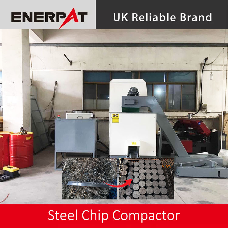 ENERPAT® スチールチップコンパクターは、スクラップスチールチップが占めるスペースを大幅に削減します。圧縮後、元々緩んでいた鉄スクラップの体積を最大 85% 削減でき、保管スペースが大幅に最適化され、倉庫保管コストが削減され、保管環境が改善されます。