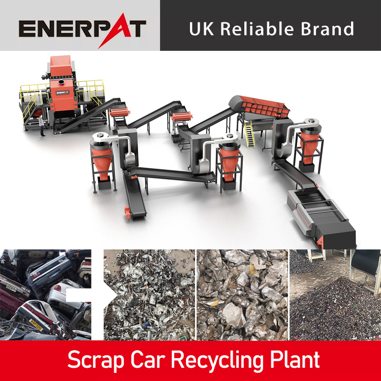 ENERPAT 廃車リサイクル工場/ラインは 自動車解体や金属リサイクルに広く使用されています。使用済み自動車のシェルを効率的に処理し、生産コストを削減し、資源の再利用効率を高める高純度の金属材料を提供します。