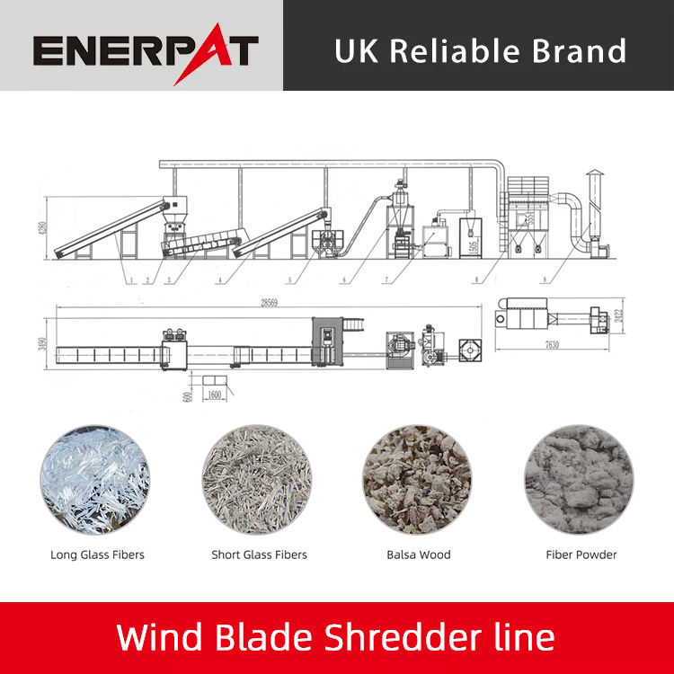 ENERPAT 風力タービンブレードリサイクルプラントは 、最先端の物理的リサイクル技術を使用しており、破砕、効率的な分別、精密選別、徹底的な洗浄という 4 つの主要な段階を含みます。このプロセスでは 、複雑な装置や極端な条件を使用せずに、分離した原料はそのまま新製品開発に利用できるため、資源リサイクルを効果的に推進できます。という優れた生産能力で グラスファイバーとバルサ材を正確に分離できます。 毎時800~1000kg、貴社のリサイクル活動を強力にサポートする生産ラインです。