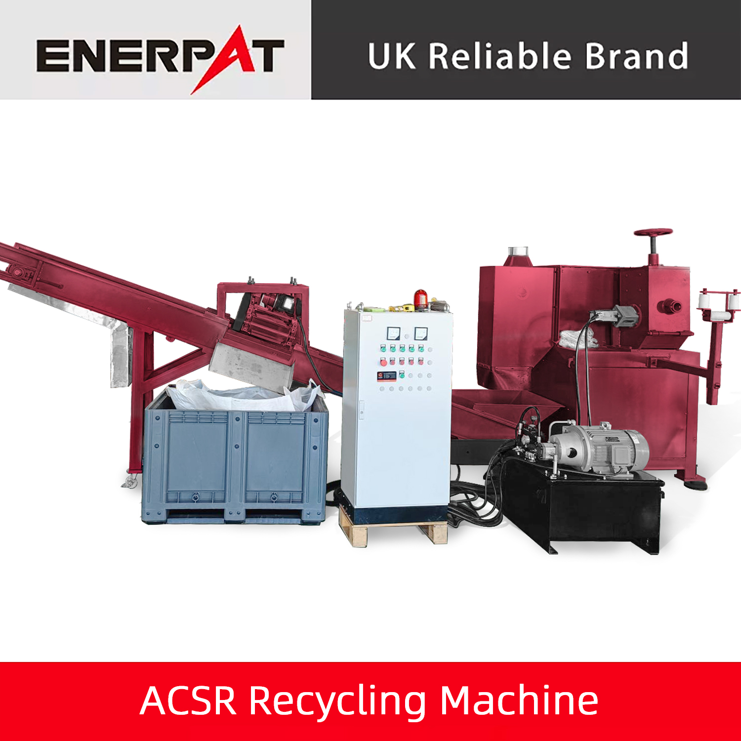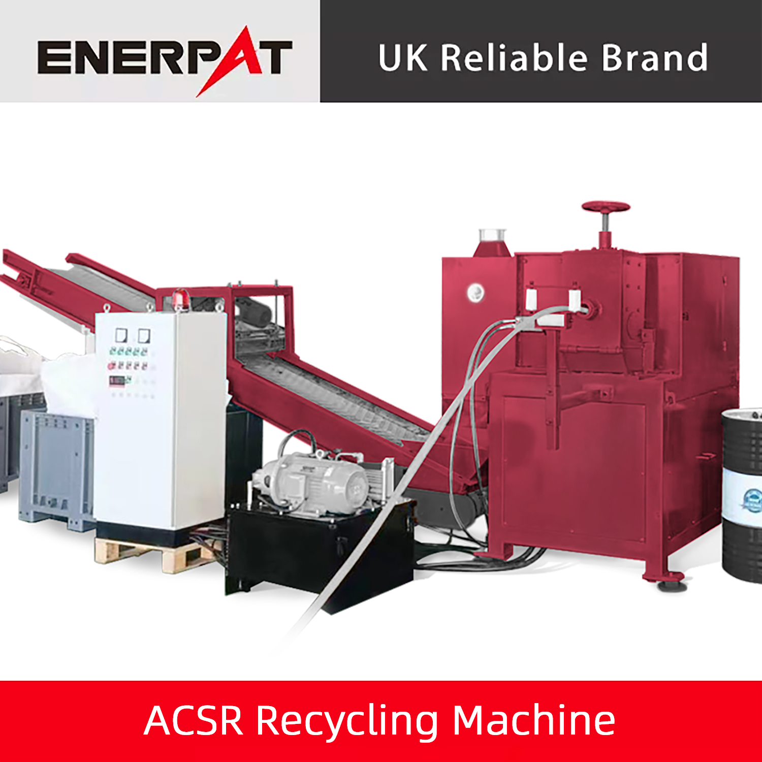 Enerpat のモジュラー ACSR 破砕および選別ラインには、ディスク クラッシャー、自動フィード ユニット、一次シュレッダー、集塵システム、磁気選別機が備えられています。完全に密閉されたダストフードが装置を密閉し、リサイクルプロセス全体をクリーンで汚染のない状態に保ちます。